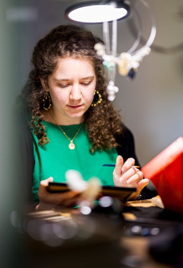Elle réalise des pièces uniques : bijoux et créations artistiques de plus grande ampleur afin de partager sa vision du beau avec toutes et tous.